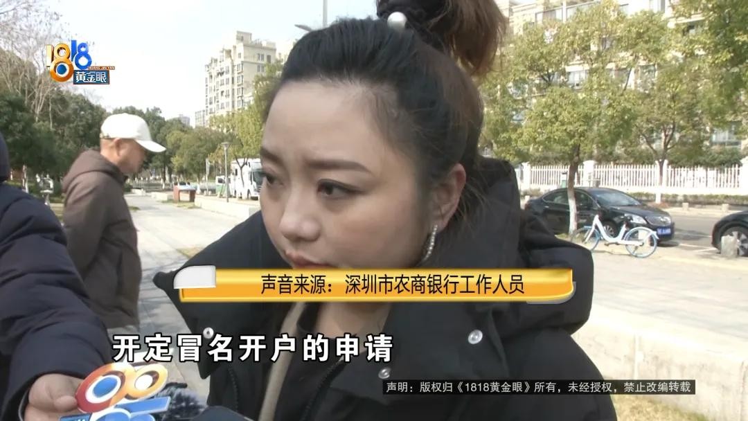 深圳市农商银行 工作人员:先进行身份核实,我们去判断说,您和当时开户的人是否为同一人。如果不是同一人的话,我们才能去,您向我们提出开定冒名开户的申请,我们才能开出证明给市场监督管理局那边。
