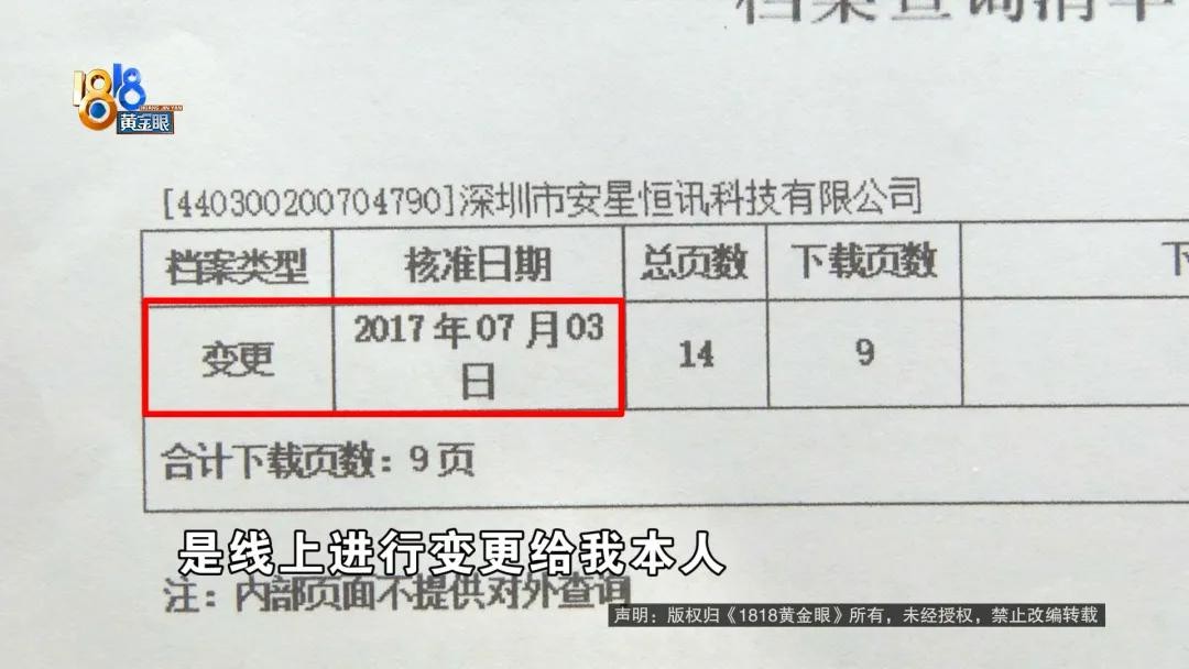 夏女士:在2017年7月3号的时候,是进行线上变更给我本人。深圳市那边给我反馈,市场监督管理局它是给我反馈,他是利用一个U盾,他说这个U盾可以替代本人二代身份证以及本人人脸识别,以及签字的。它通过完成的这家银行是深圳市农商银行石岩支行。