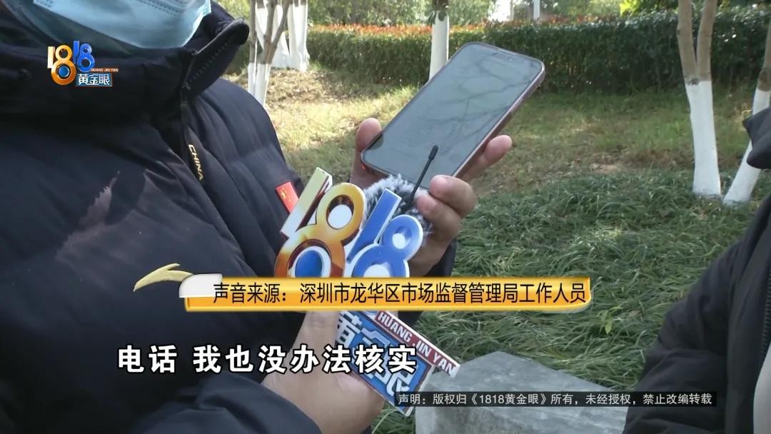 深圳市龙华区市场监督管理局 工作人员:你如果是电视台,你要干嘛的话,你要找我们办公室先登记一下再说的。