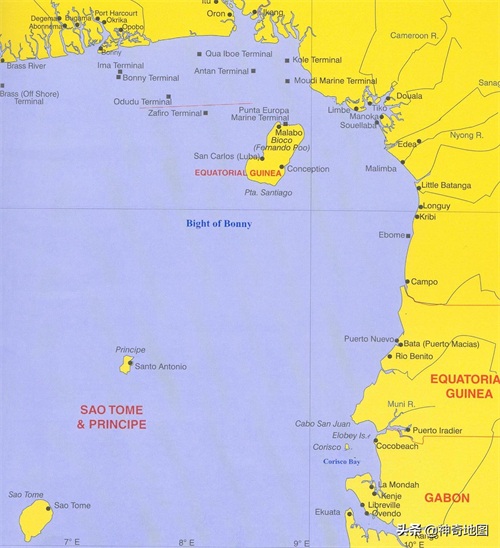 圣普与周边国家尼日尼亚、赤道几内亚、加蓬