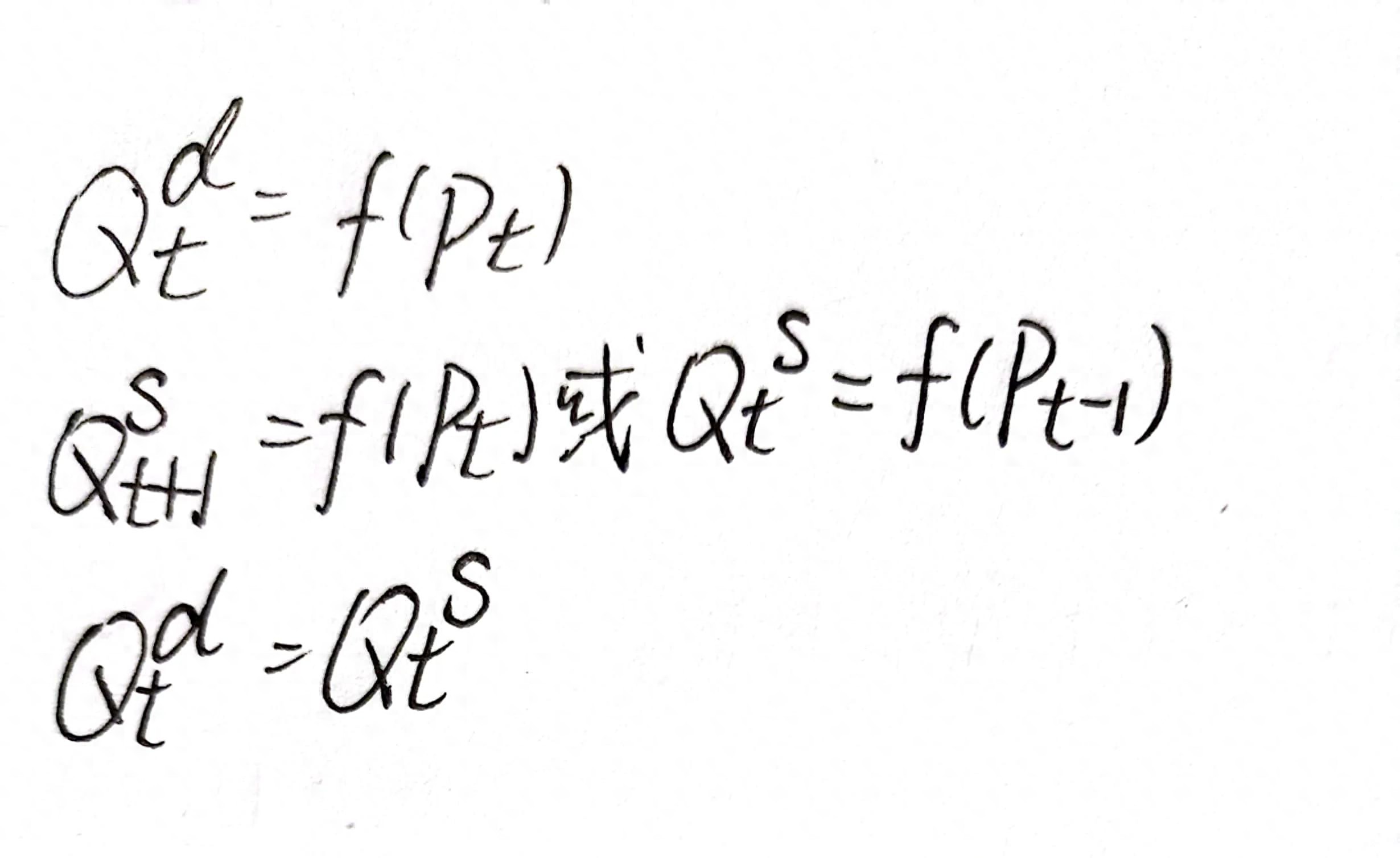 (1)文字假设:生产周期较长,本期价格决定本期需求量,本期价格决定下一期的供给量。