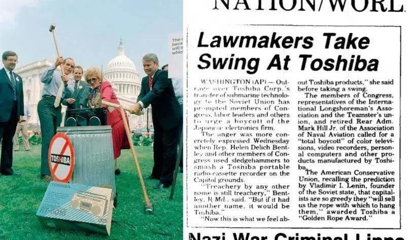 1987年6月,美国通过“东芝制裁法案”对东芝公司进行制裁,取消一系列采购合同,5年内禁止向美国出口任何商品。