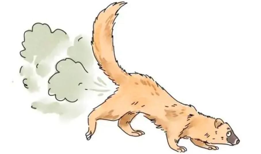 其次,黄鼠狼有一个武器,就是它的臭腺。当遭遇袭击的时候,它会释放臭气,迷惑敌人。传闻这个味道非常的难以言喻,有点类似于腐败的鸡蛋,主要成分应该是丁硫醇。在这种情况下,哪怕是人,都能被“熏”懵,因此大家认为黄鼠狼有着能让人“致幻”的技能。