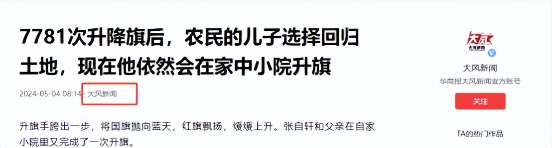 于是,他决定在家里升国旗,张自轩的父亲非常赞同他的做法,每天陪着张自轩升国旗。