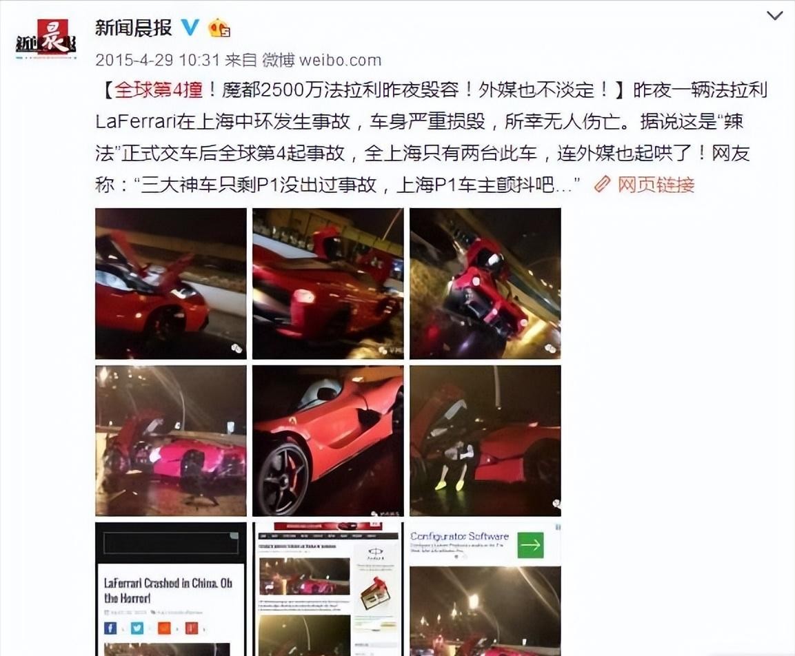 2015年4月,一辆价值2500万的红色法拉利,因为撞上上海中环高架桥,瞬间报废。