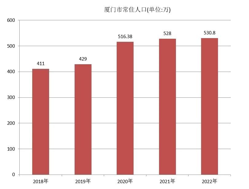 厦门常住人口2018-2022年变化图