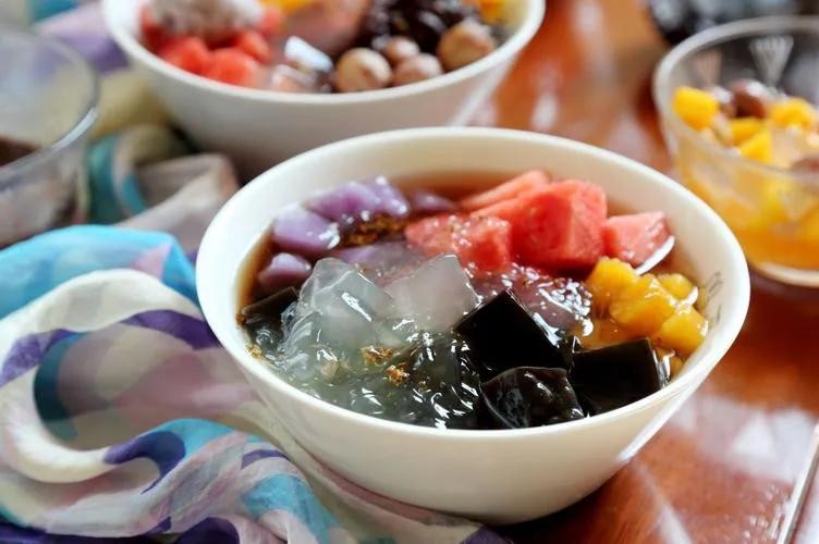 烧仙草:是一道消暑饮品,浇上蜂蜜和凉爽的汤汁,口感凉爽,非常解暑。烧仙草的制作非常简单,只需要将仙草切成小块,加入适量的糖,搅拌均匀即可。