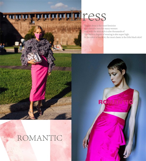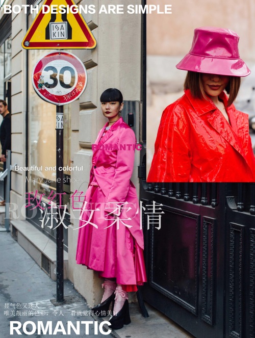 玫红色是一个色牢度还是较高的颜色,可将辨识度提升,而且其抢眼指数百分百,可将视觉张力提高不少。