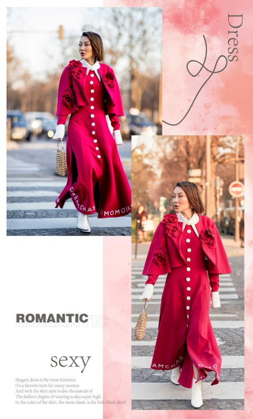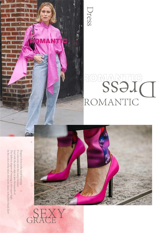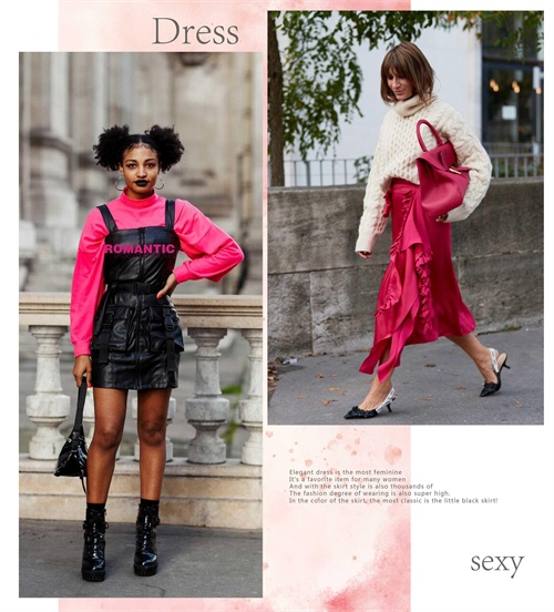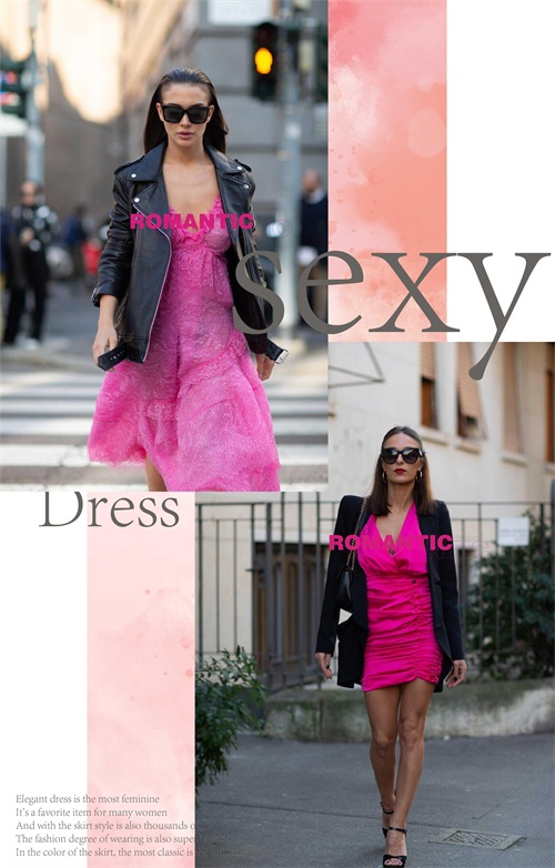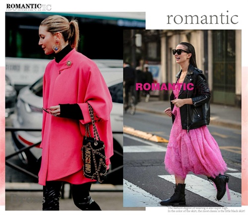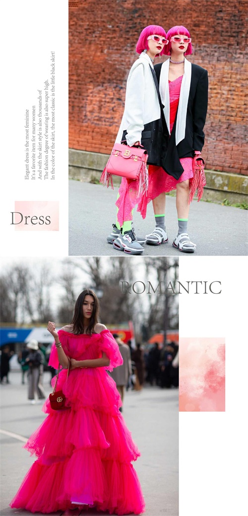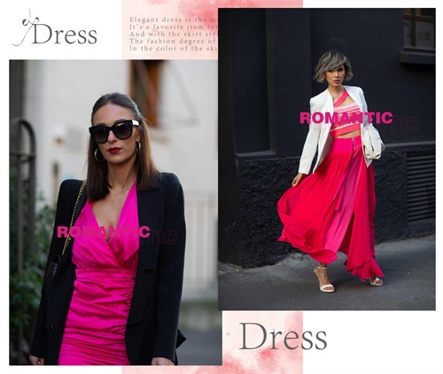 玫红色的妖娆与唯美,带来靓丽十足的视觉美感,穿着大方而又美观。如果是温柔裙装造型,那么在其它单品的组合上面,可以搭配一些不同风格的。