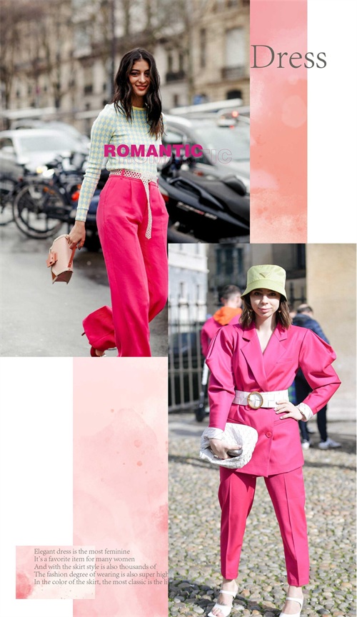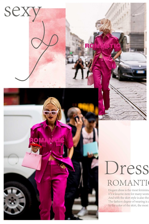 而玫红色的单品,可以采用小单品的式样来展现,缔造出视觉上面的焦点出现,完美呈现出时髦抢眼的着装造型,看着就觉得靓丽而又迷人至极。