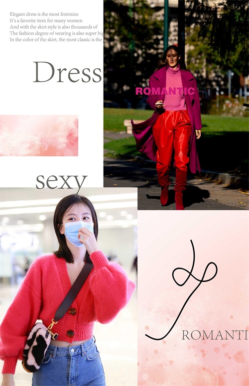 玫红色的单品有很多不同的类别,而不一样的单品造型,其代表的时尚感,以及风格属性,都是有所区别的。像毛衣制作的玫红色单品,温柔感觉油然而生,显露出迷人的小女人气息。