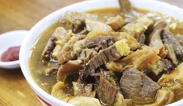 义乌上溪、吴店一带历来就有屠宰牛的场所,当地人将牛舌、牛血、牛蹄、牛杂等用上溪特有烧法烹制出“牛系列”,味鲜美微辣,久尝不厌。