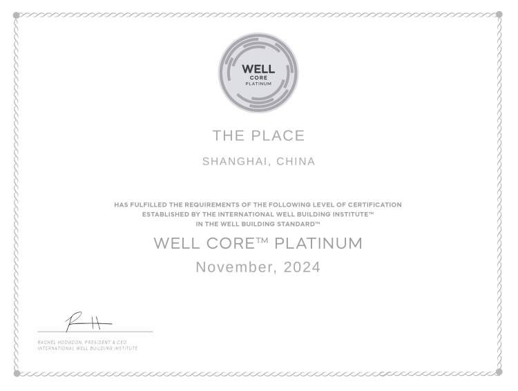 (虹桥南丰城LEED & WELL铂金级认证证书)