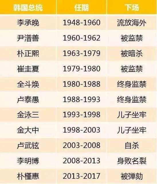 让我觉得韩国奇葩的是韩国的总统,也被调侃是最危险的职业。按理说,作为一国的总统,可以说站里在权利的最高峰,但韩国总统却基本上没有一个好下场。一念天堂,一念地狱。从1948年建国到现在共12位总统,除目前还在任期的文在寅外,其他11位总统或被监禁或被弹劾,甚至被刺杀,都没逃过青瓦台的魔咒。1979年,时任总统朴正熙被刺杀身亡,时隔33年他的女儿朴槿惠当选为韩国第18届总统,也成为韩国历史上第一位女总统,但依然没有逃脱被弹劾的命运,目前仍在关押。呜呼哀哉,唏嘘不已。