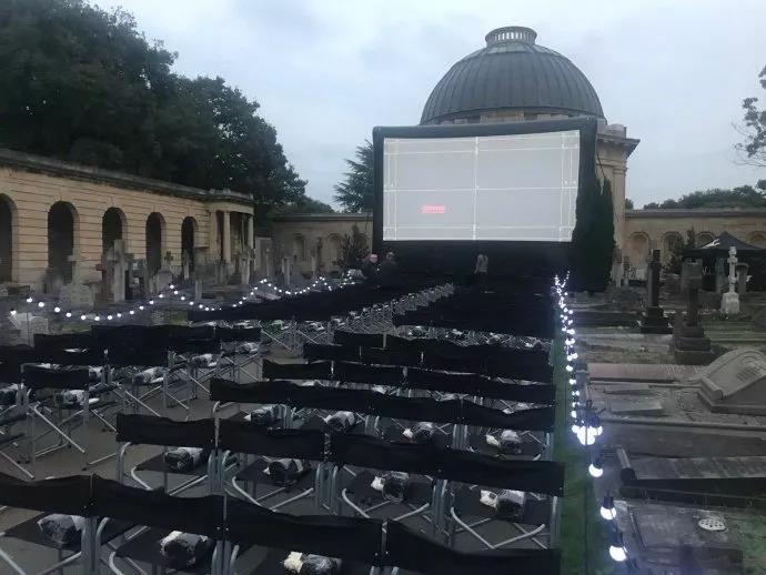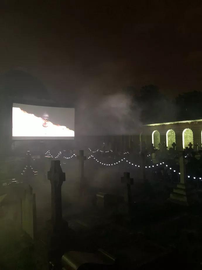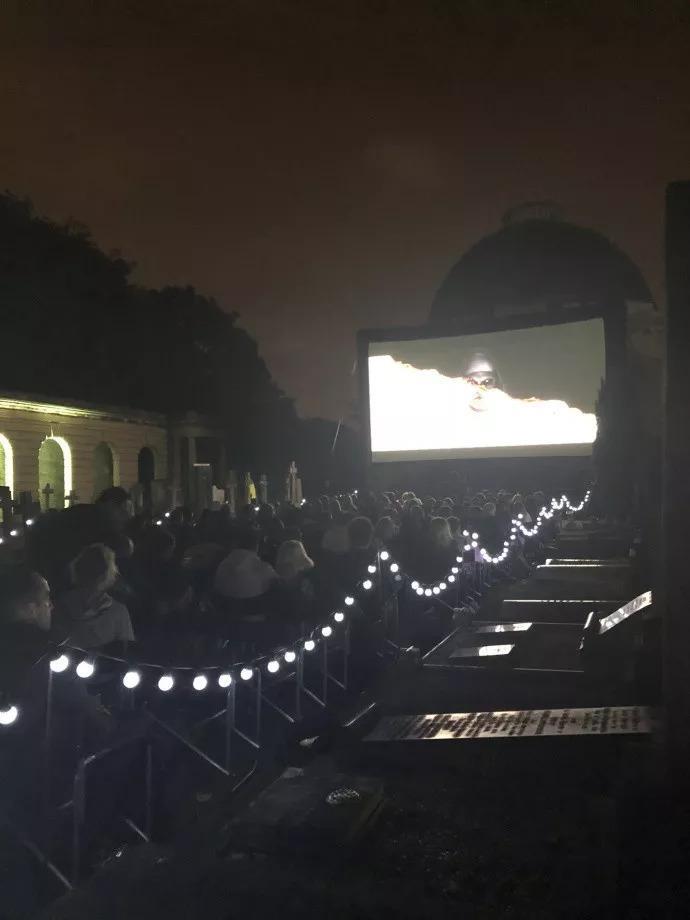 来感受下坟头观影的现场气氛。