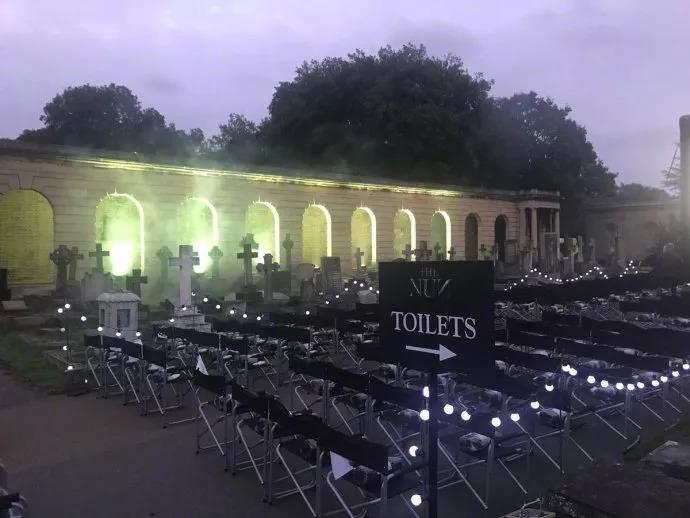 今天,温子仁“招魂系列”前传《修女》,就选在了英国西部的一处墓地举行首映礼,而且还是午夜放映!