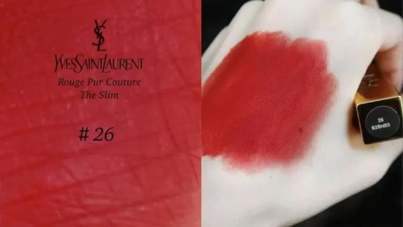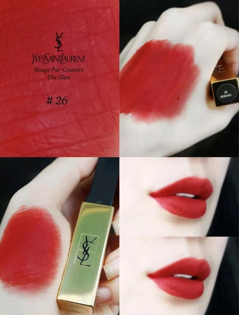 YSL小金条2020年新色26#,暖调偏橘苹果红高级哑光质感