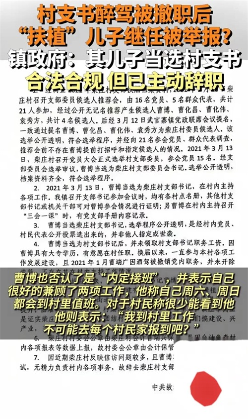 “世袭罔替村干部”!村支书违法免职儿子接班,镇政府称合法合规