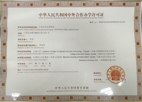 江南大学北美学院是2001年经国家教育部批准成立的中外合作办学机构(中华人民共和国中外合作办学许可证编号:MOE32CAA02DNR200100780),是江南大学二级学院。