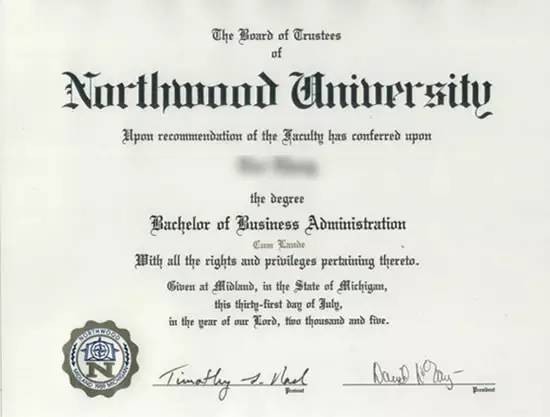 美国诺斯伍德大学学士学位证书样本