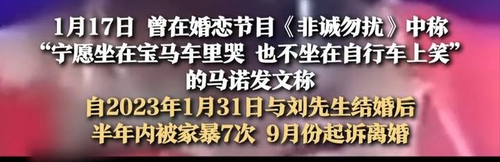 2023年1月31日,马诺与其丈夫刘先生结婚。本以为自己找到了一个好归宿,没成想自己是掉进了一个巨大的坑中。婚后短短半年,马诺便遭遇了七次家暴,就连狗都差点被摔死。