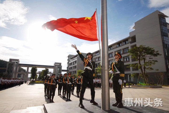 ▲博师高级中学在新校区举行升旗仪式。