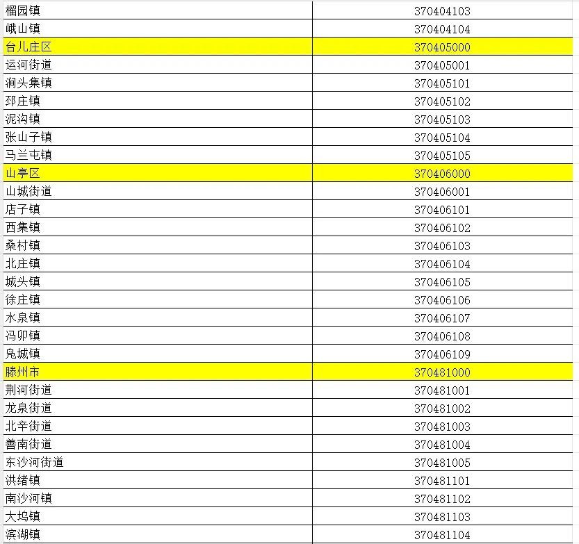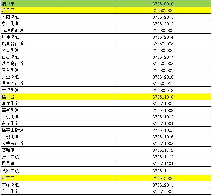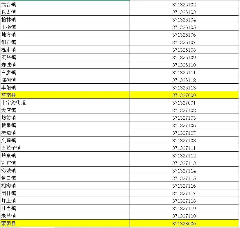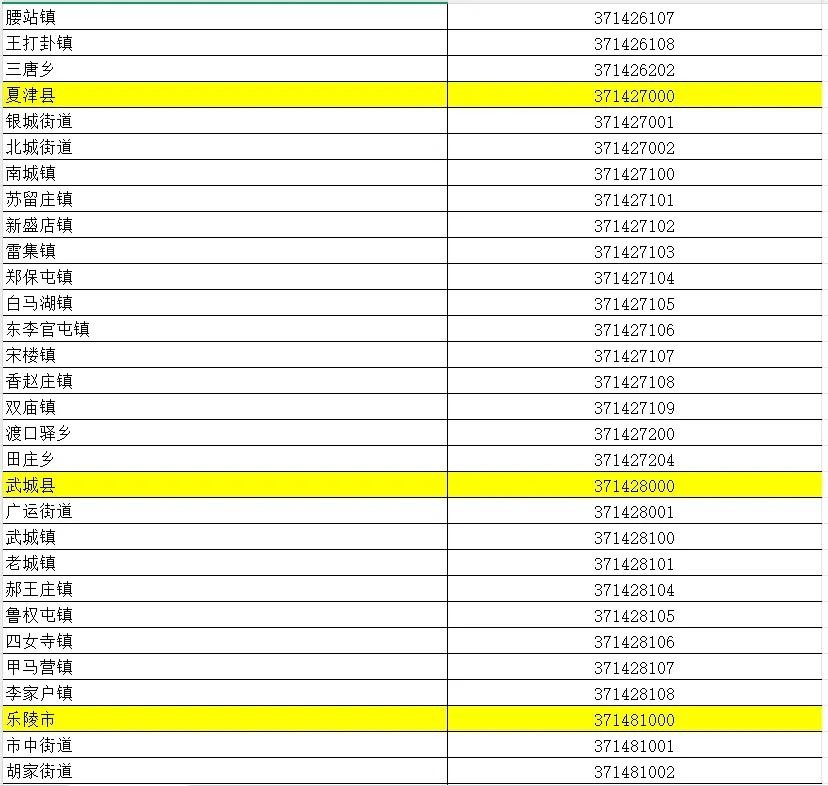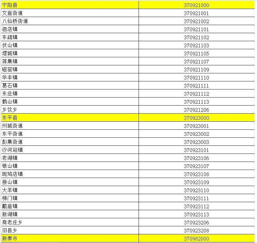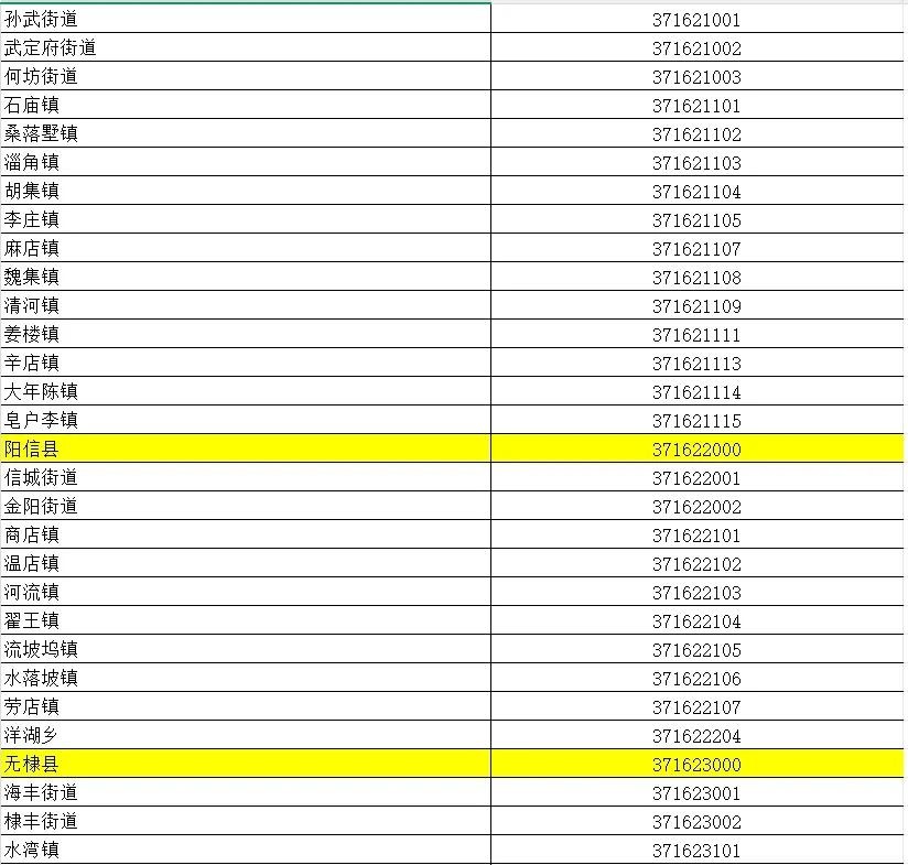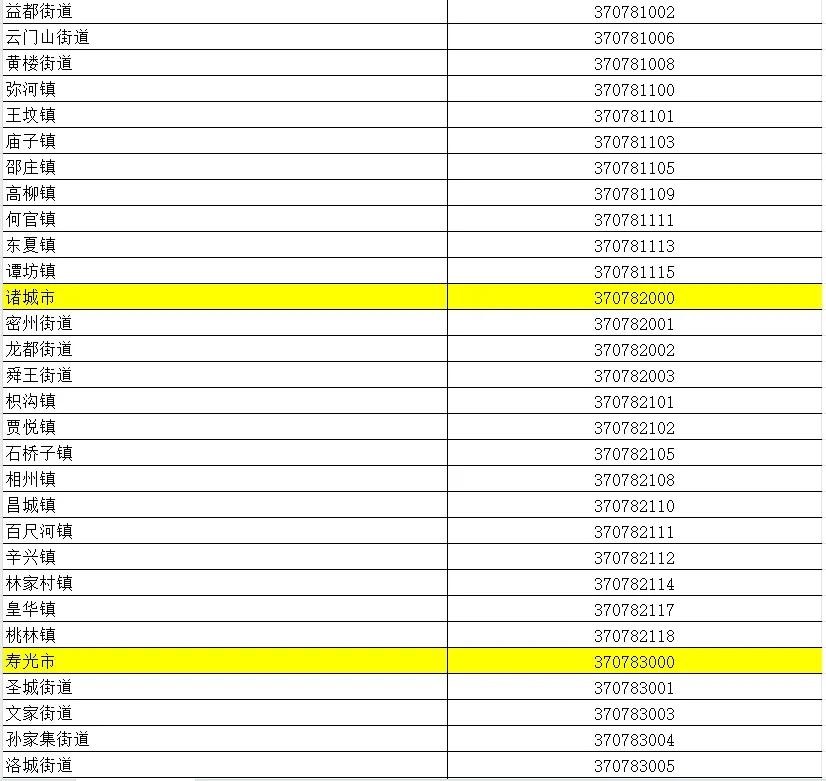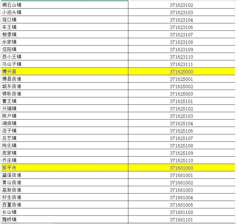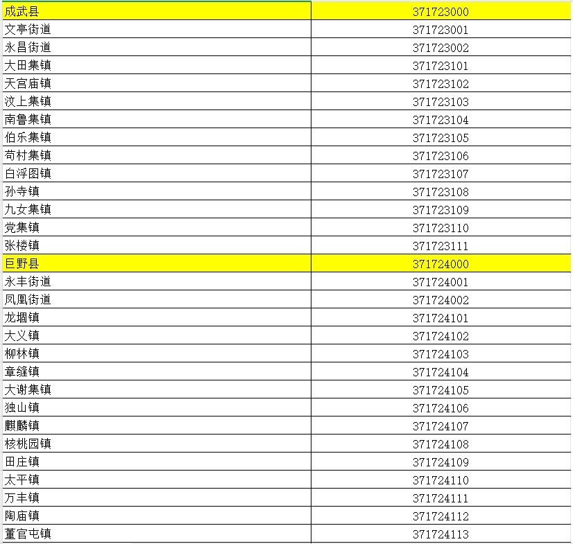 山东省行政区划信息统计表