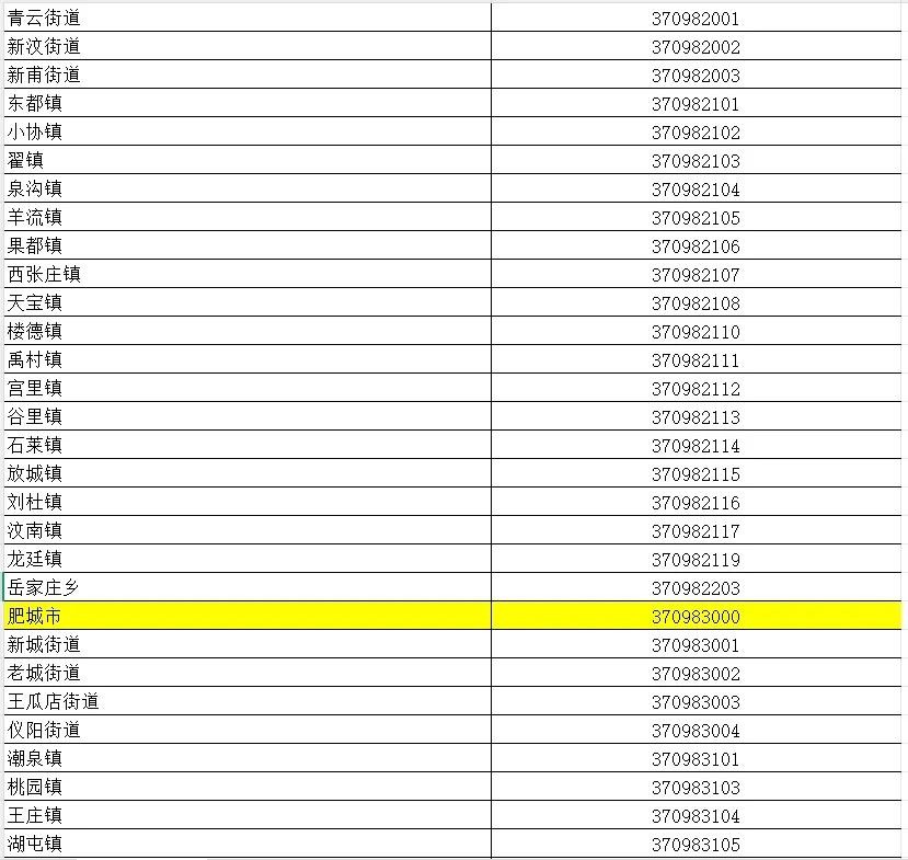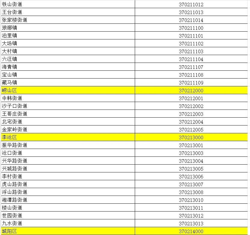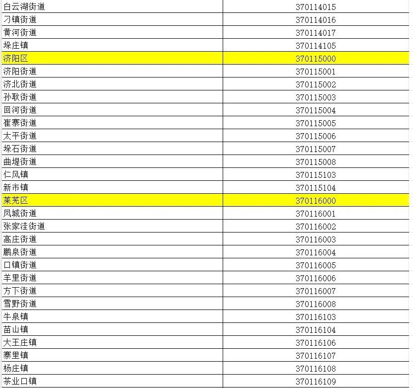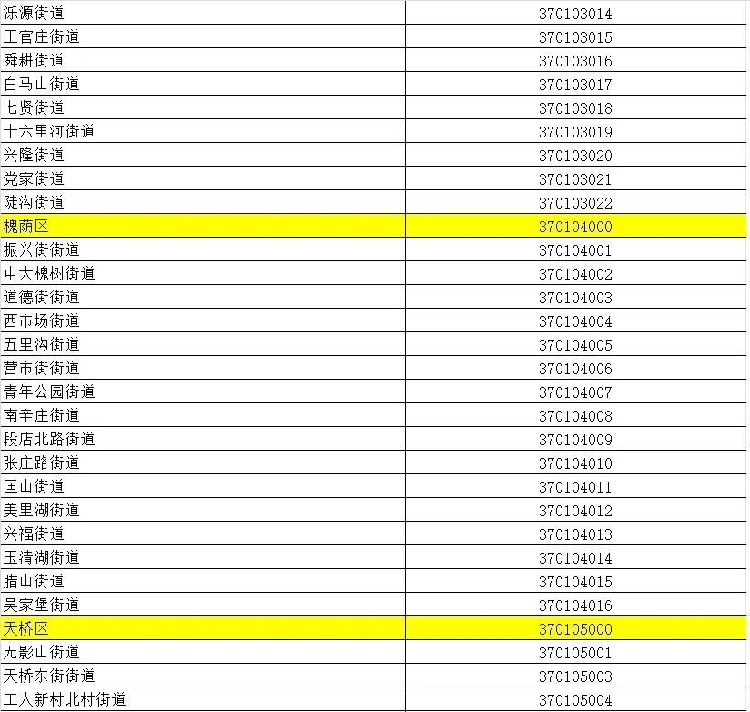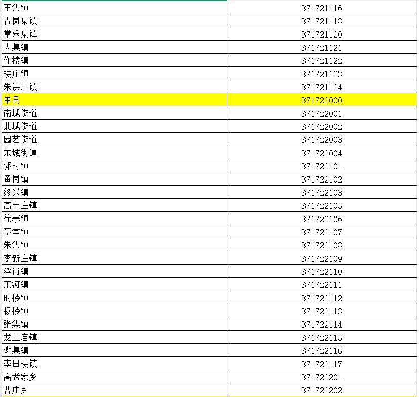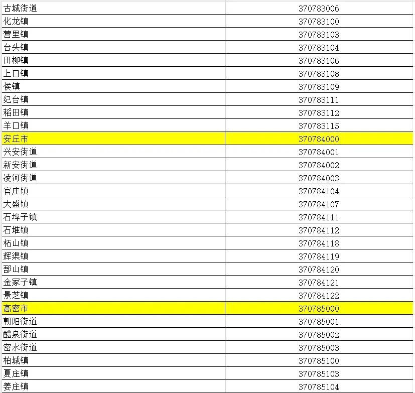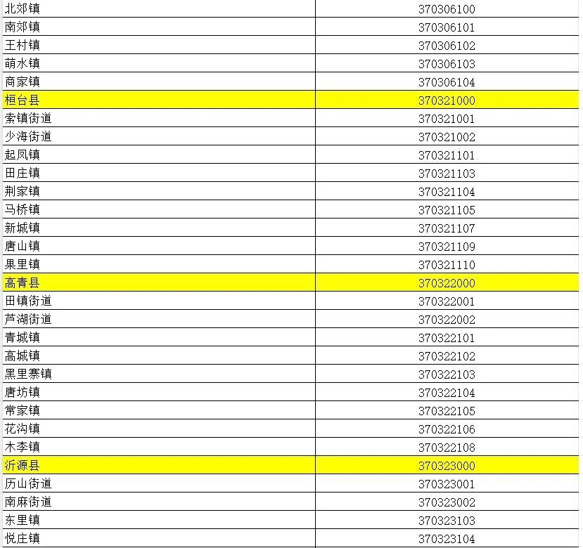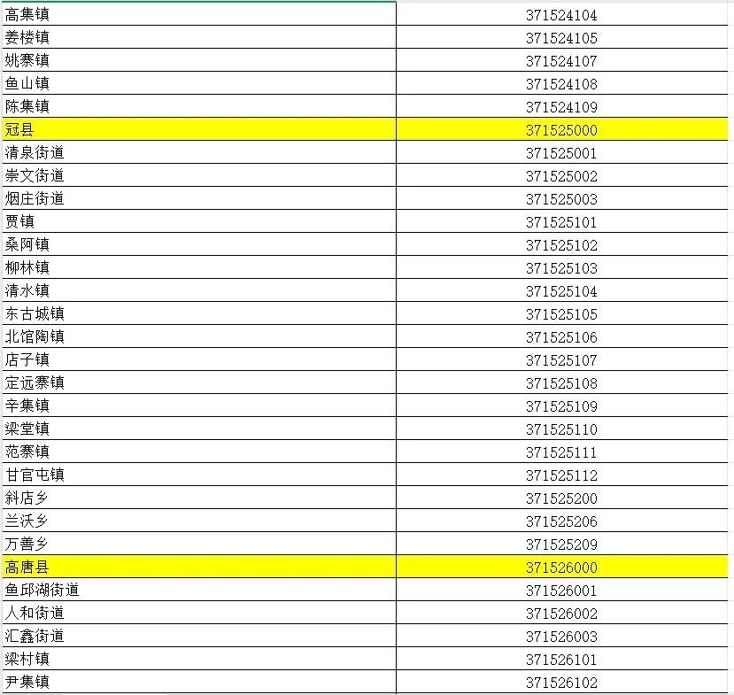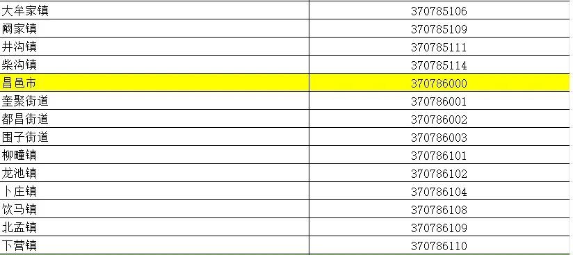 山东省行政区划信息统计表
