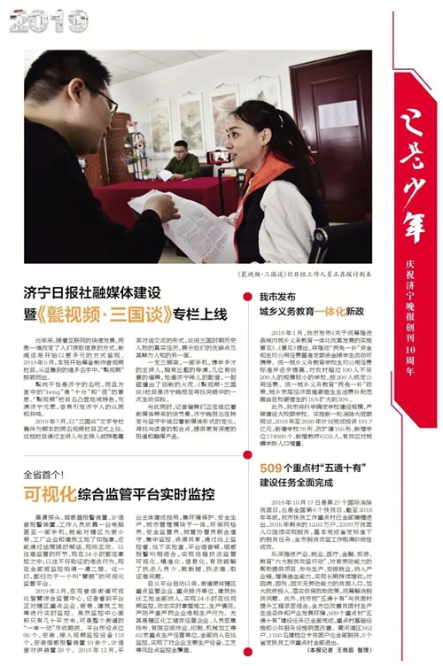 随着全媒体不断发展,传统报业也在积极拥抱新技术、构建新平台,探索融媒时代的纸媒转型之路。从微博到微信,从短视频到自制栏目,济宁晚报深学细研,创新创优,在省、市新闻类、设计类、融媒类等方面均获得不同奖项。2019年7月,以刊登于济宁晚报专栏“三国谈”稿件为脚本的同名视频栏目《甏视频·三国谈》上线,作为全省同级媒体唯一一档史论类栏目,当年即获得2019年度“济宁市好新闻奖”一等奖,2020年荣获我市社会科学普及优秀作品(视频类)奖。今年3月,为在广大读者群体中倡树良好的阅读风尚,济宁晚报推出另一档融媒类栏目——《甏视频·荐书堂》。未来,我们尽所能研发更多融媒新产品,弘扬主旋律,传播好声音。