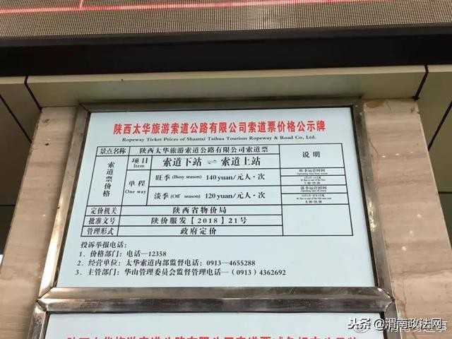 华山西峰索道单程票价从140元降至120元(温馨提示:华山西峰索道目前正在检修停运中);北峰索道单程票价从80元降至45元。