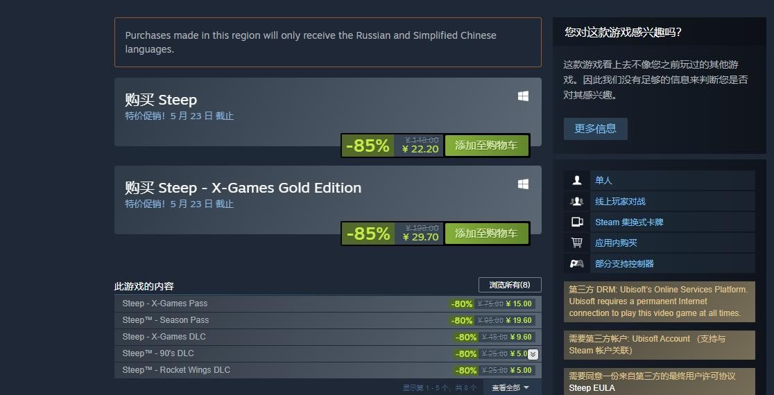 以上就是小编给玩家们带来的steep史低价格多少钱,以及steep骨折价格入手方法详解。