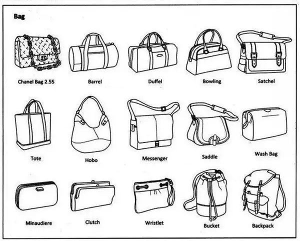 女性的包包种类很多,基本有Clutch手包、Bucket背包、Hobo肩包、Tote手袋等。