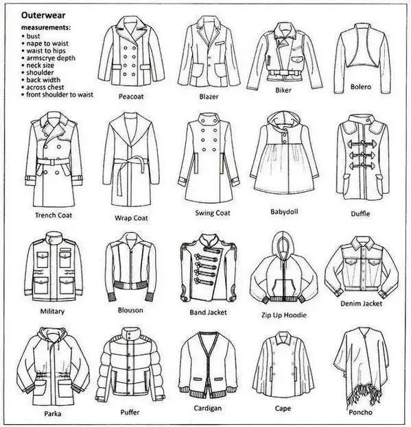 各类服装款式英文图解1Outerwear