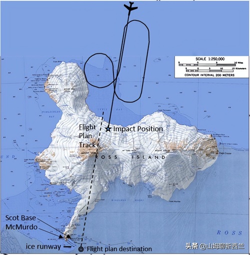 中午12点45分,机长在获得麦克默多站的批准后,将飞机下降到离开地面只有450米的高度飞行,并且在下降到这个高度后,立即开启了自动驾驶模式。