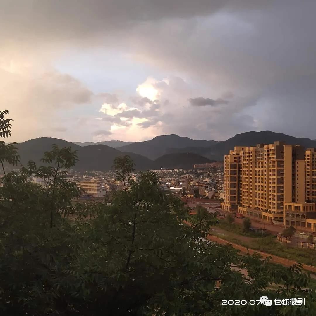 2020年7月31日下午20时许,雨后黄昏,县城犹如镀金,醉美奇观,实属罕见。