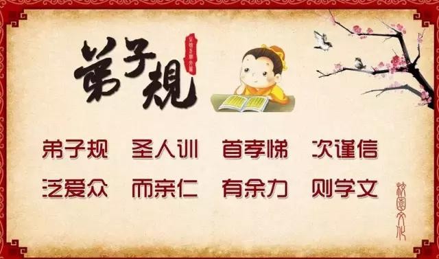 【解释】弟子规,是圣人120的教诲。首先要孝敬父母、友爱兄弟姊妹,其次要谨言慎行、讲求信用。