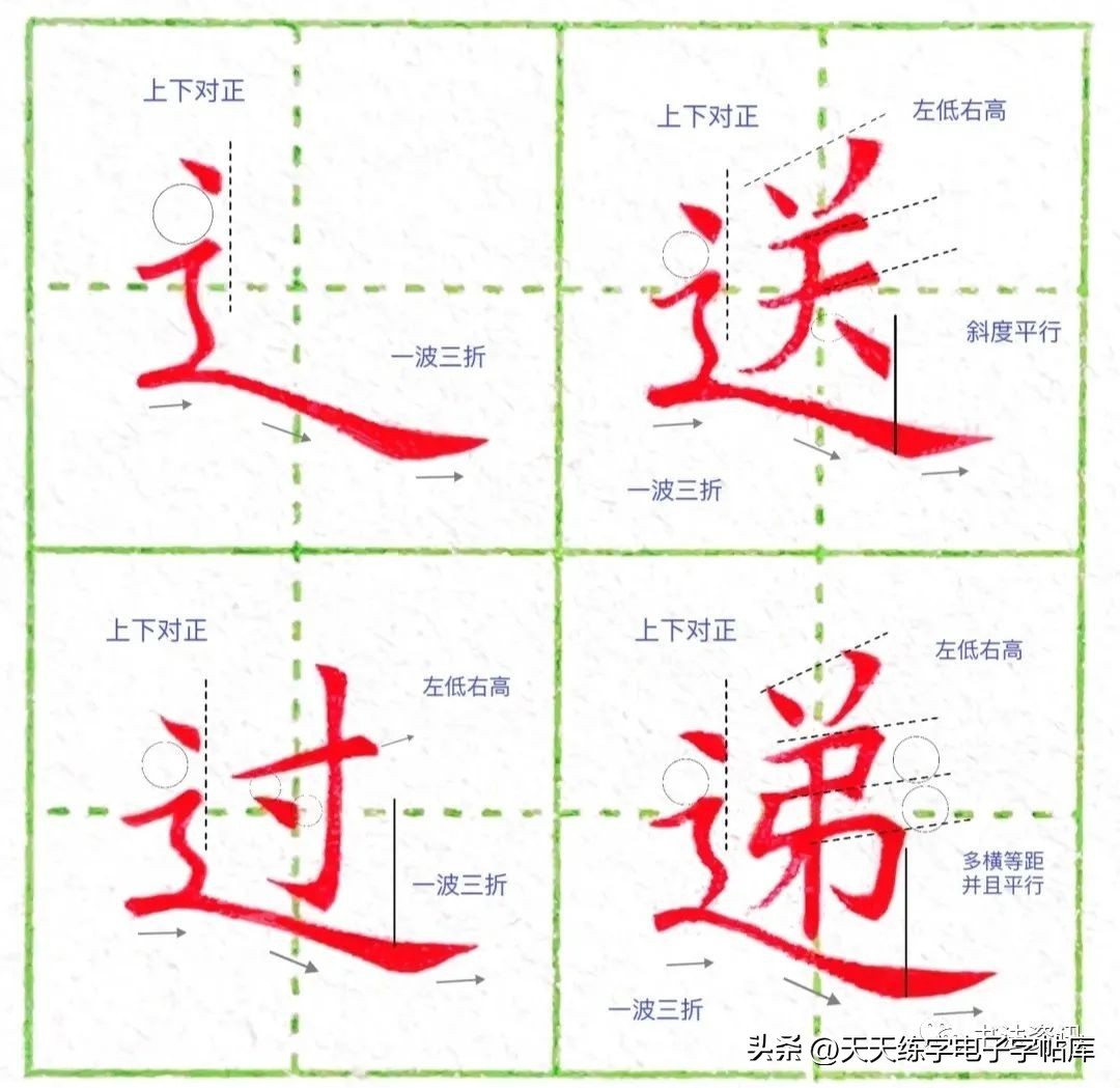 走之底中的平捺需要起到一个承托的作用,所以它必须写长,再把底部的笔画舒展写宽以后,被包围的部分就得尽量写窄一些,因此必须得适当地缩短横向笔画的长度,包括竖弯钩弯的部分也不能长走之底的写法要诀,走之底有三画,难点在后两笔;原因是这后两笔笔画弯曲不定,不好把握,下面就详细介绍一下走之底的写法要诀。