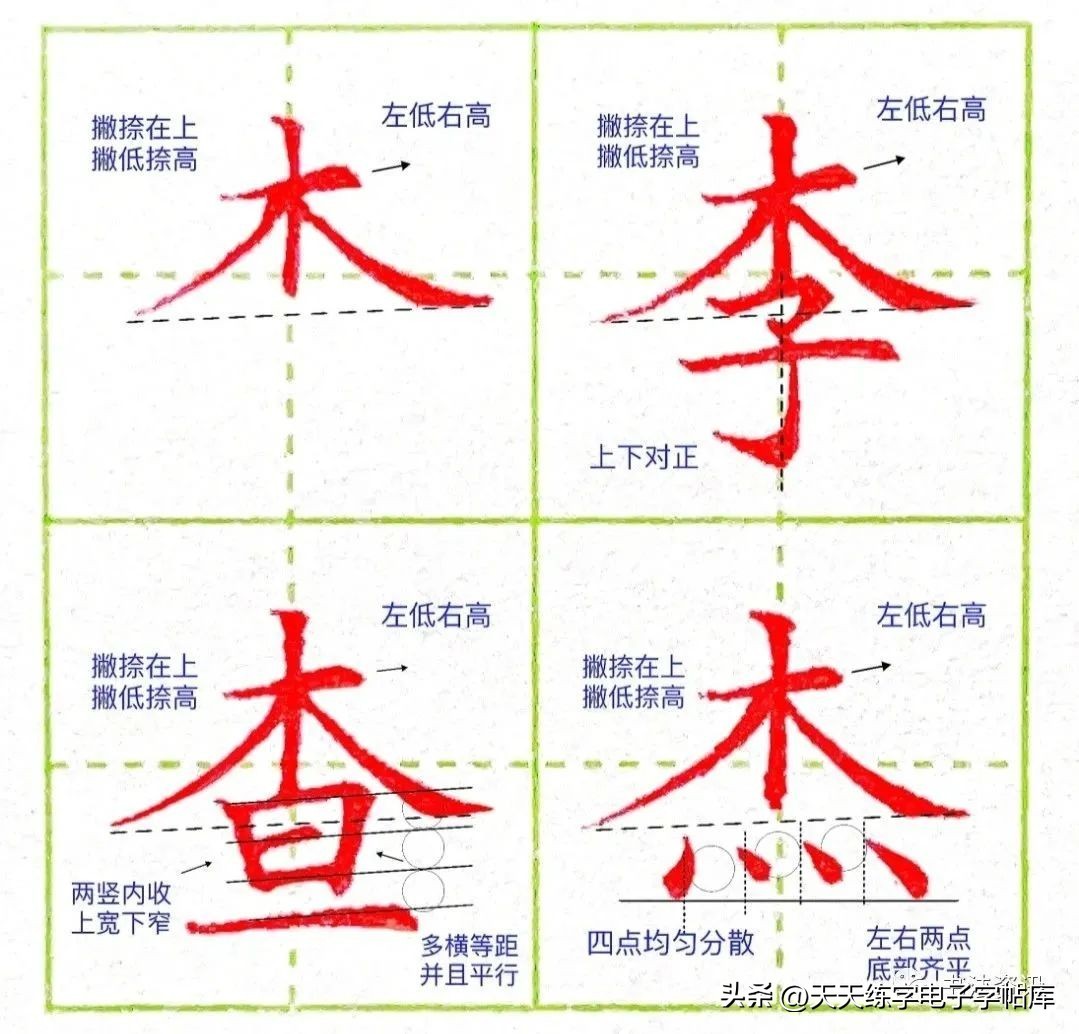 木字头的书写要领: