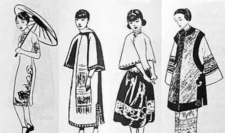 (张爱玲绘制《中国的生活与服装》插画。)