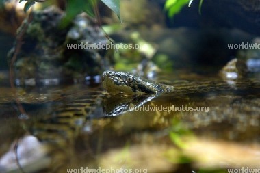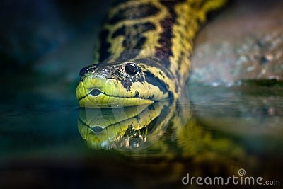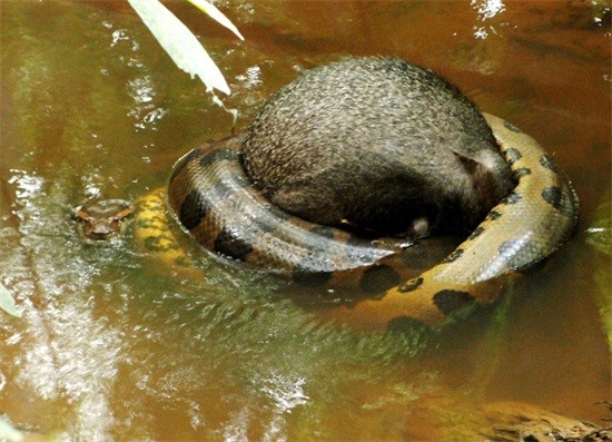 绿水蚺和黄水蚺属于蟒科蚺亚科水蚺属,是两种产于南美的两种大型半水栖蛇类。这两种巨大的蟒蛇成年后几乎没有天敌,吞食相当大的猎物,雄踞在食物链的顶端。