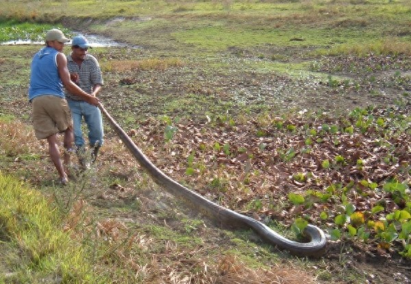 虽然比绿水蚺小,黄水蚺依然是一种很大的蟒蛇