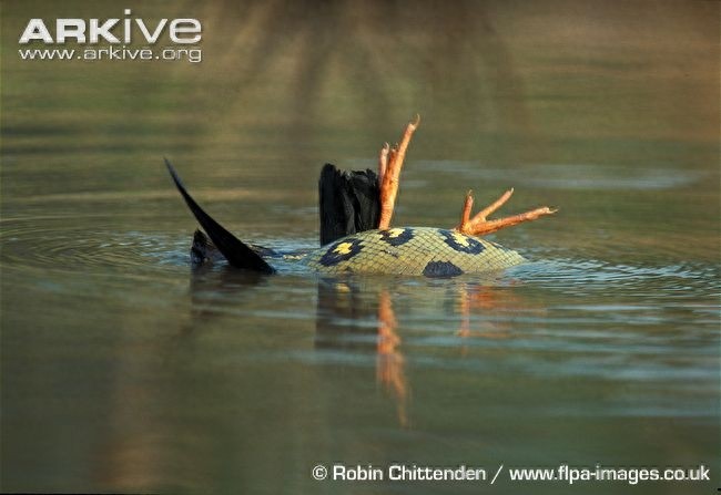 捕杀大侧颈龟。因为有龟壳的保护,这种大龟是无法被绞杀的。于是绿水蚺会把它压在水下溺死,然后整个吞下去。强大的胃酸连龟壳都能消化掉