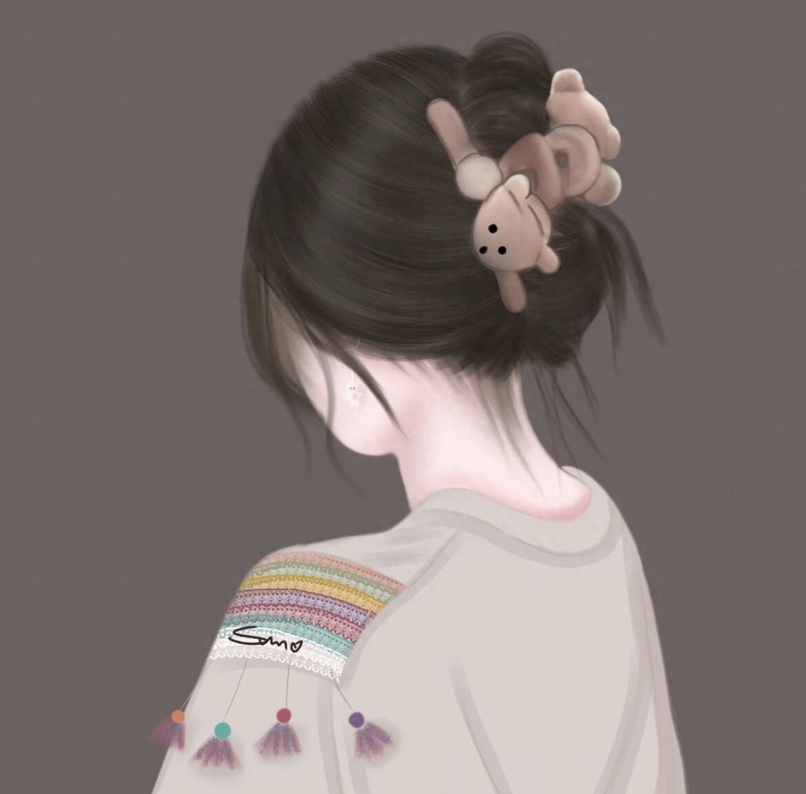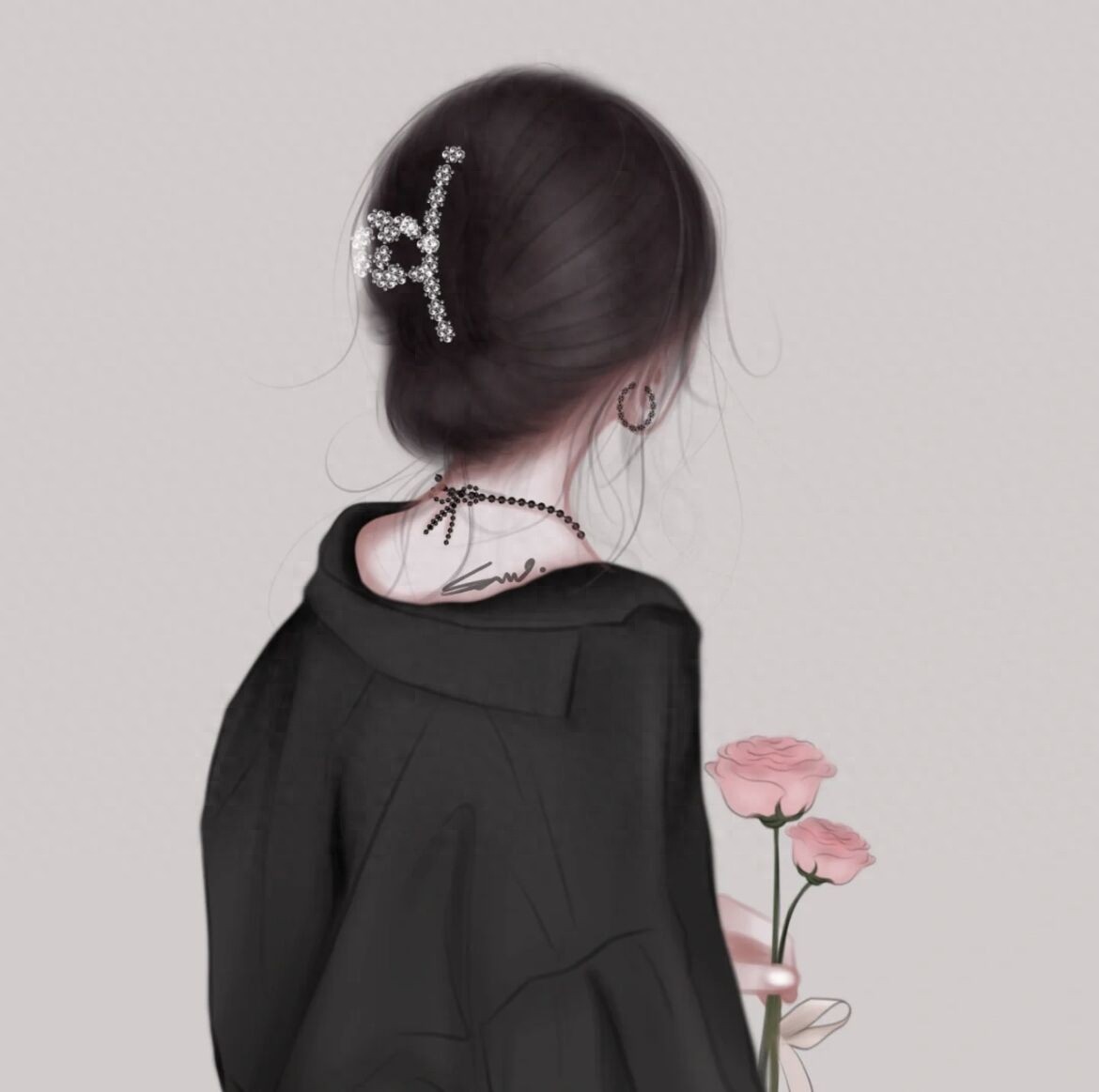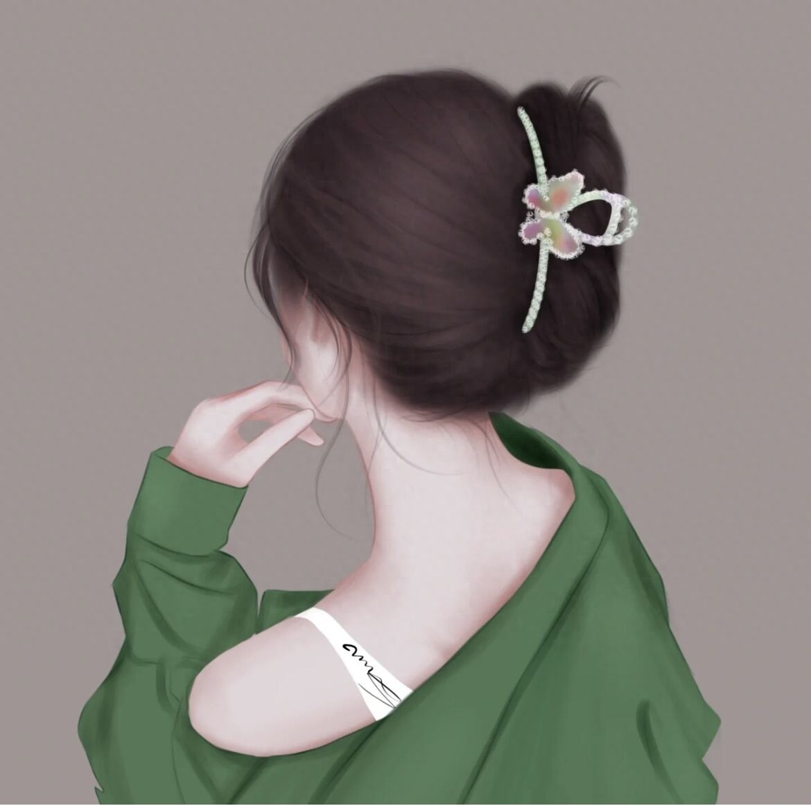 温柔侧面背影头像,唯美手绘气质女生图片,值得收藏