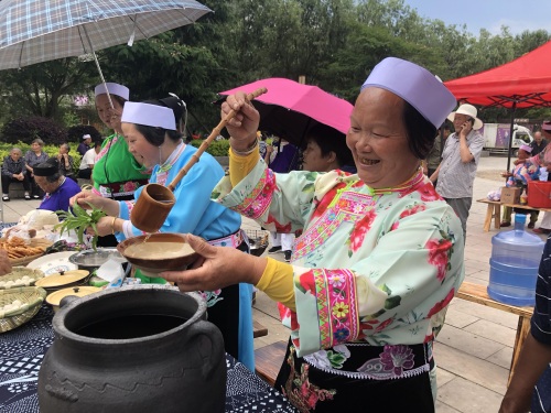 活动现场的碧波广场热闹非凡,一曲曲带着乡音的山歌在广场上回荡。舞台上节目形式丰富多彩,有山歌对唱、地戏、舞蹈、芦笙等表演;舞台下有非遗民俗展、屯堡打糍粑、煮大碗茶、等20余种安顺特色美食,吸引了上千名群众驻足观看。
