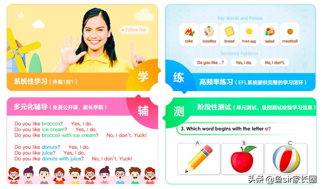 从鱼Sir的角度来看,无论是针对0基础的孩子,还是小学时期英语的应试要求,这份课程体系都是比较适合的。