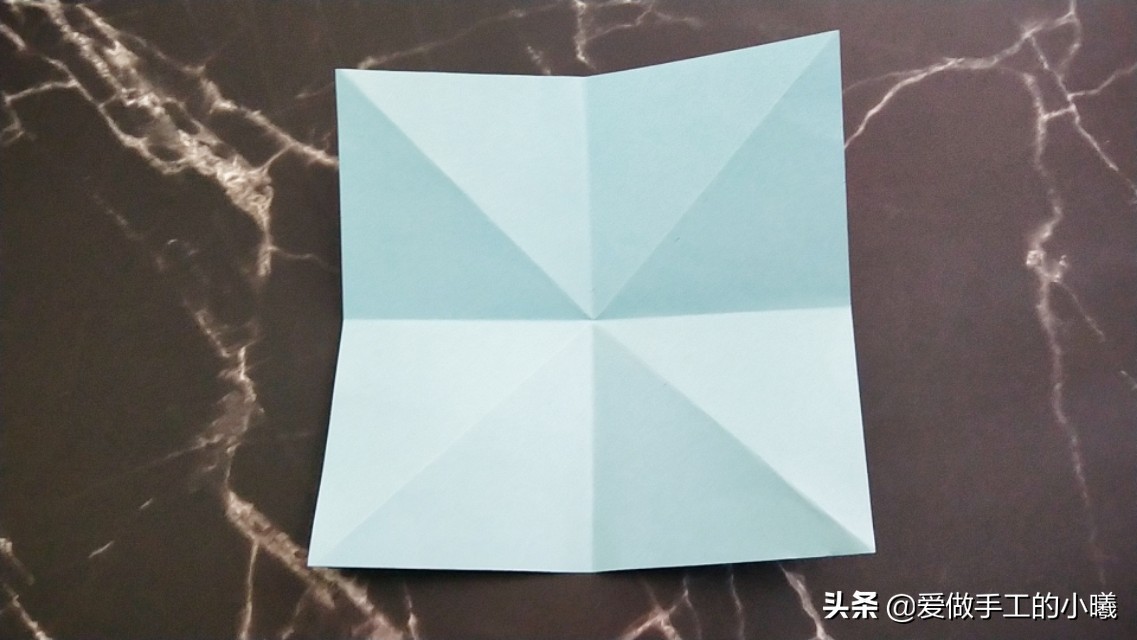 首先折一个“米”字。(沿着两条中线和对角线折叠。)