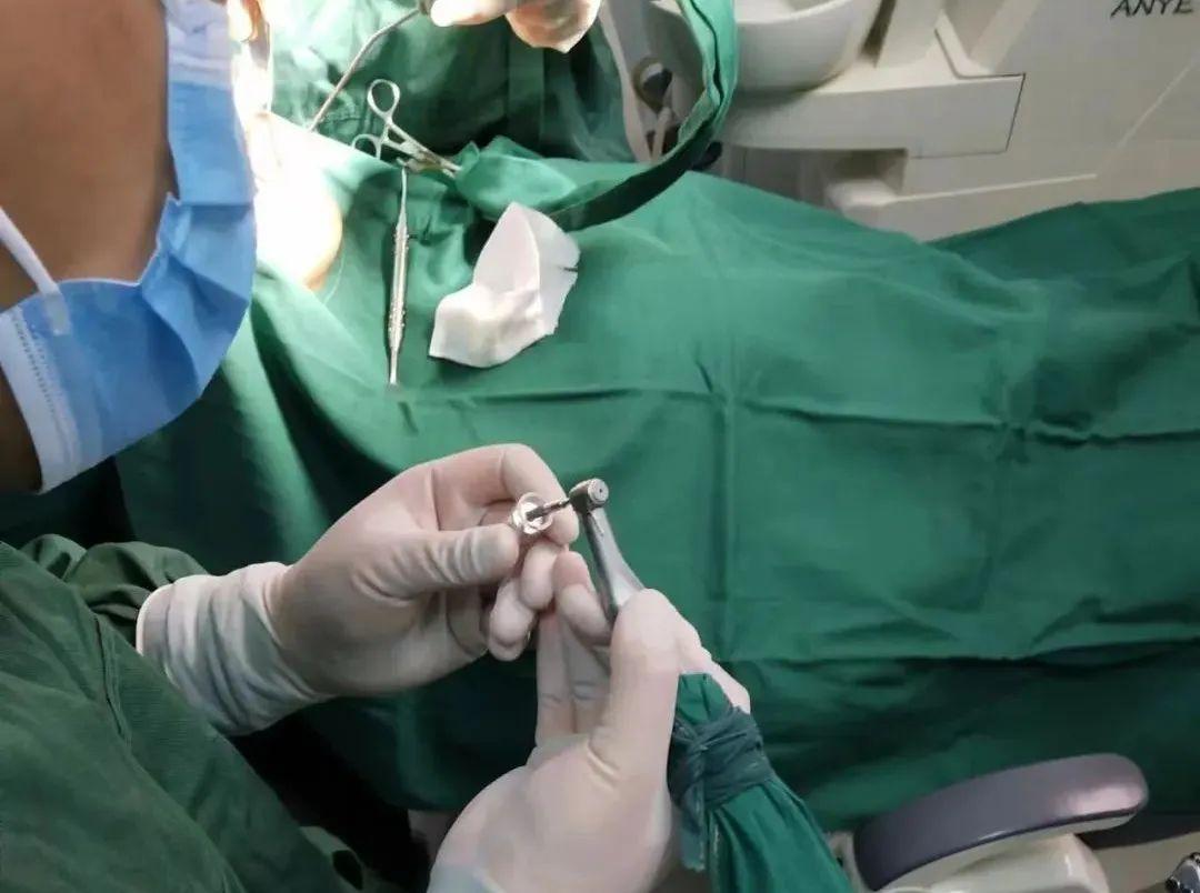 △左手的小东西就是种植体,需要由第三人打开递给术者。受访者供图