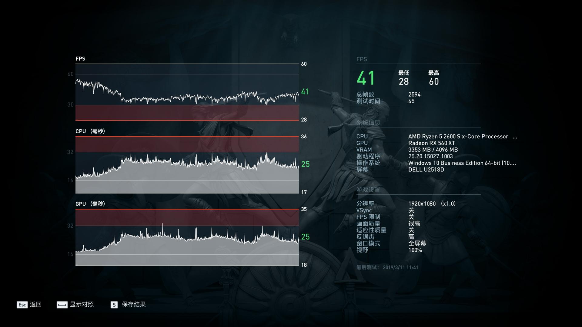 蓝宝石RX 560XT 白金版 平均帧数41fps