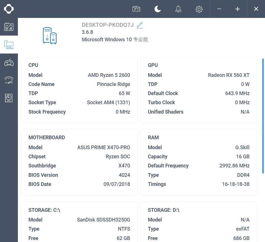 搭配RX 560XT这样的千元显卡,平台测试当然要更亲民点,使用Ryzen 5 2600+华硕PRIME X470-PRO的组合,并且超频至全核4GHz,内存开X.M.P上16GB DDR4 3000双通道,SanDisk Ultra 3D 250GB作为测试项目的存储盘。