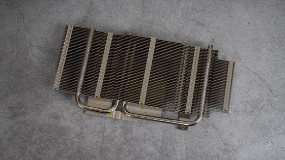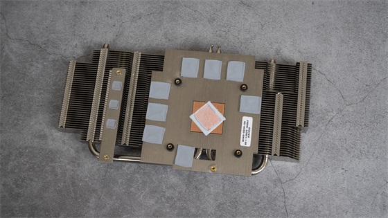 两条6mm热管是直接穿Fin到鳍片面积群的,目前主流千元显卡一般都是这种方式。